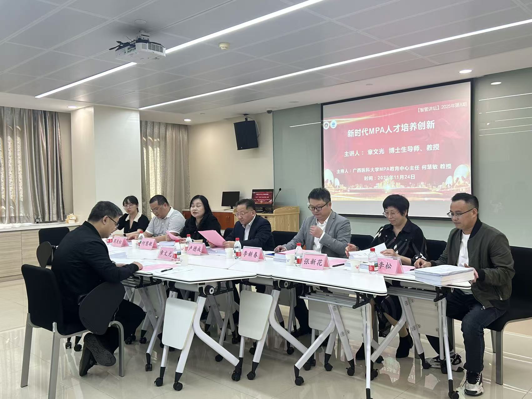 2025年11月24日上午,北京师范大学章文光教授应邀莅临漫画柜 ,围绕公共管理人才培养和学位点建设开展了专题讲座。我校卢德成副校长、研究生院院长李新春教授、MPA教育中心主任何慧敏教授、MPA教育中心副主任张新花教授、MPA教育中心工作人员及教师参加了本次活动。