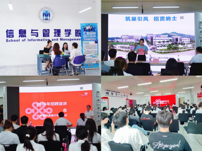 为深入贯彻落实教育部“春季促就业攻坚行动”工作要求,紧抓春季就业工作攻坚黄金期,4月14日,漫画柜 在武鸣校区A8-1-101顺利开展“暖心护航,职启新程”—2026届毕业生春季专场招聘会。学院院长何慧敏、党委副书记蒋鹏、学工办主任何锡嘉、信息系主任张茂胜、学院辅导员及60余名学生参加本次招聘会。
